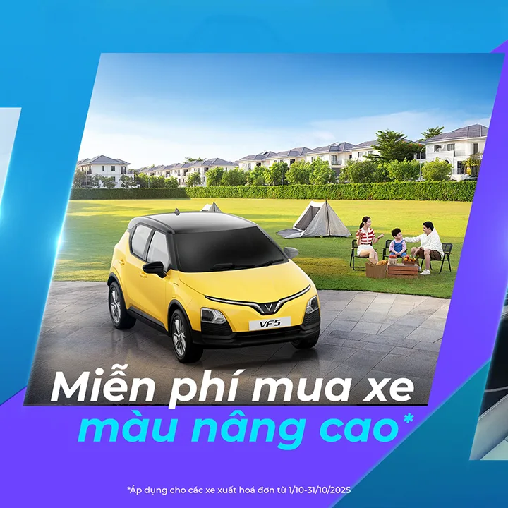 Miễn phí mua xe màu nâng cao, vô tư chọn màu sắc yêu thích áp dụng cho các xe xuất hoá đơn từ 1/10 - 31/10/2025*